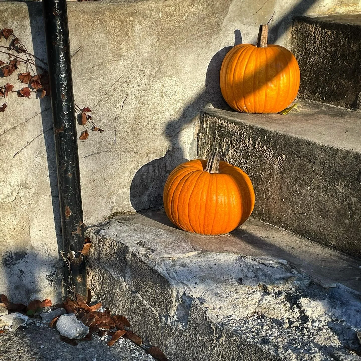#pumpkins #fall #fallcolors #fallleaves #shadows #lateafternoon #sidewalk #newengland